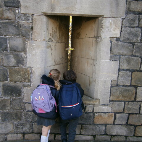 We had a wonderful day in the sunshine looking around the state apartments, seeing Queen Mary's doll house and visiting St George's Chapel. We learnt a lot of information in our workshop which was 'all about castles' and enjoyed acting out how a castle was defended.