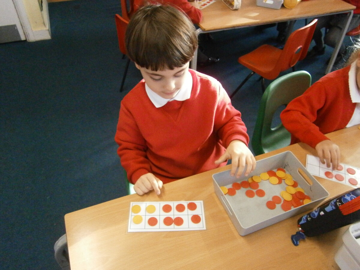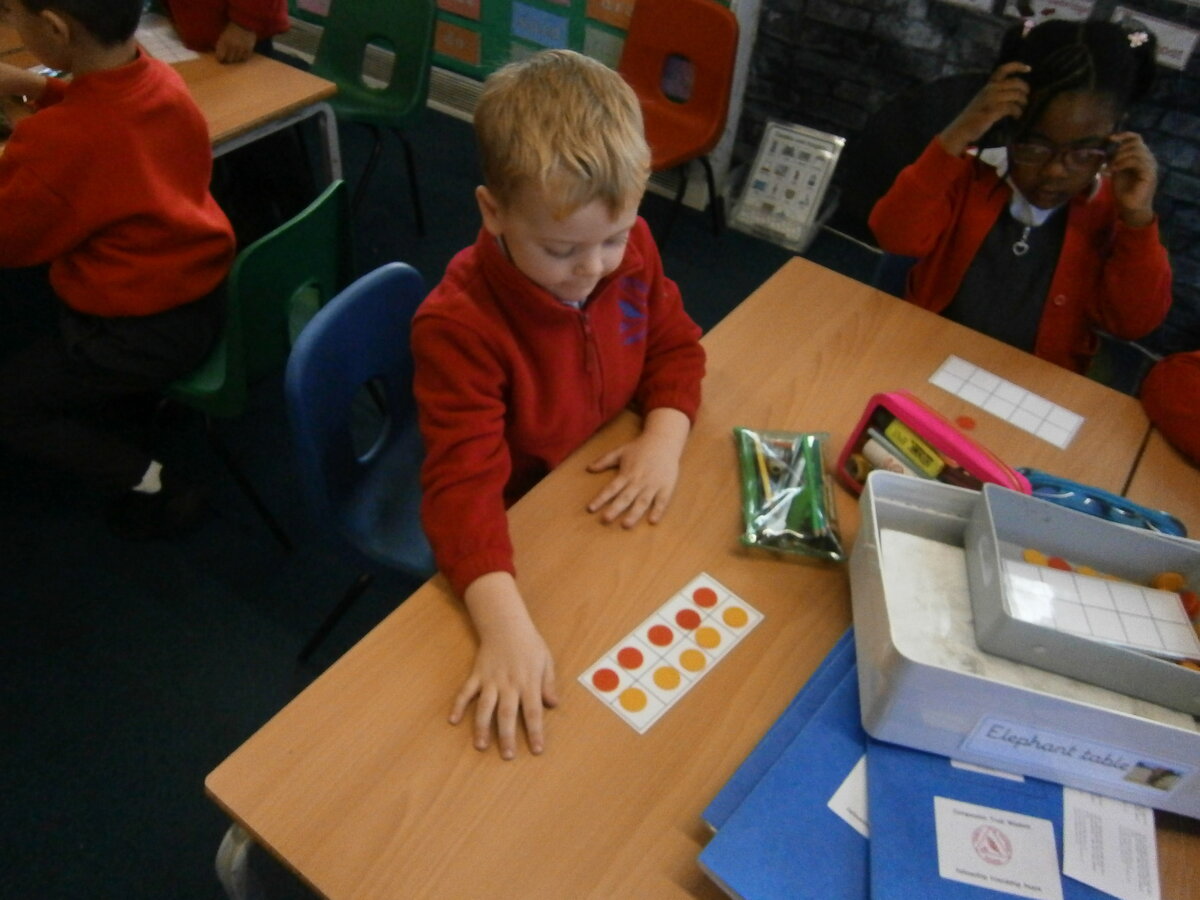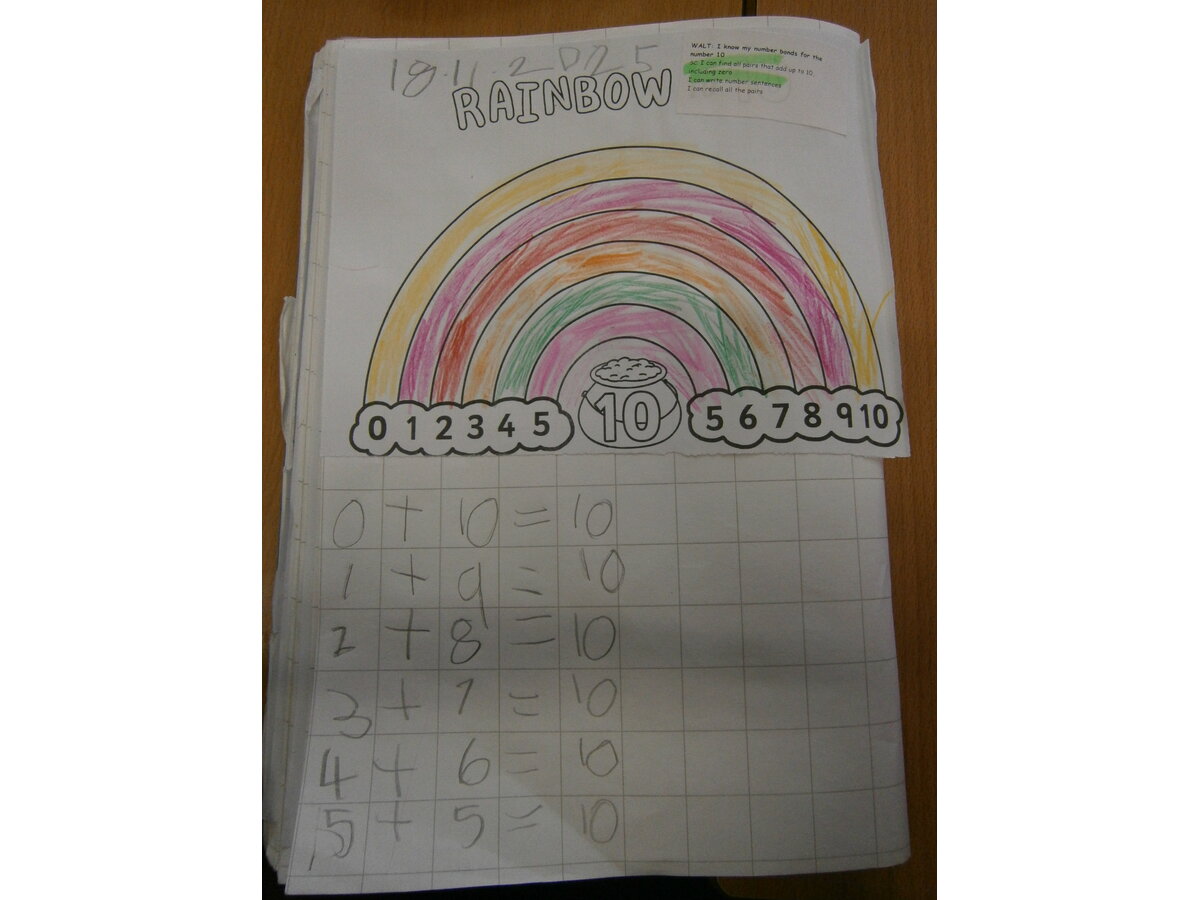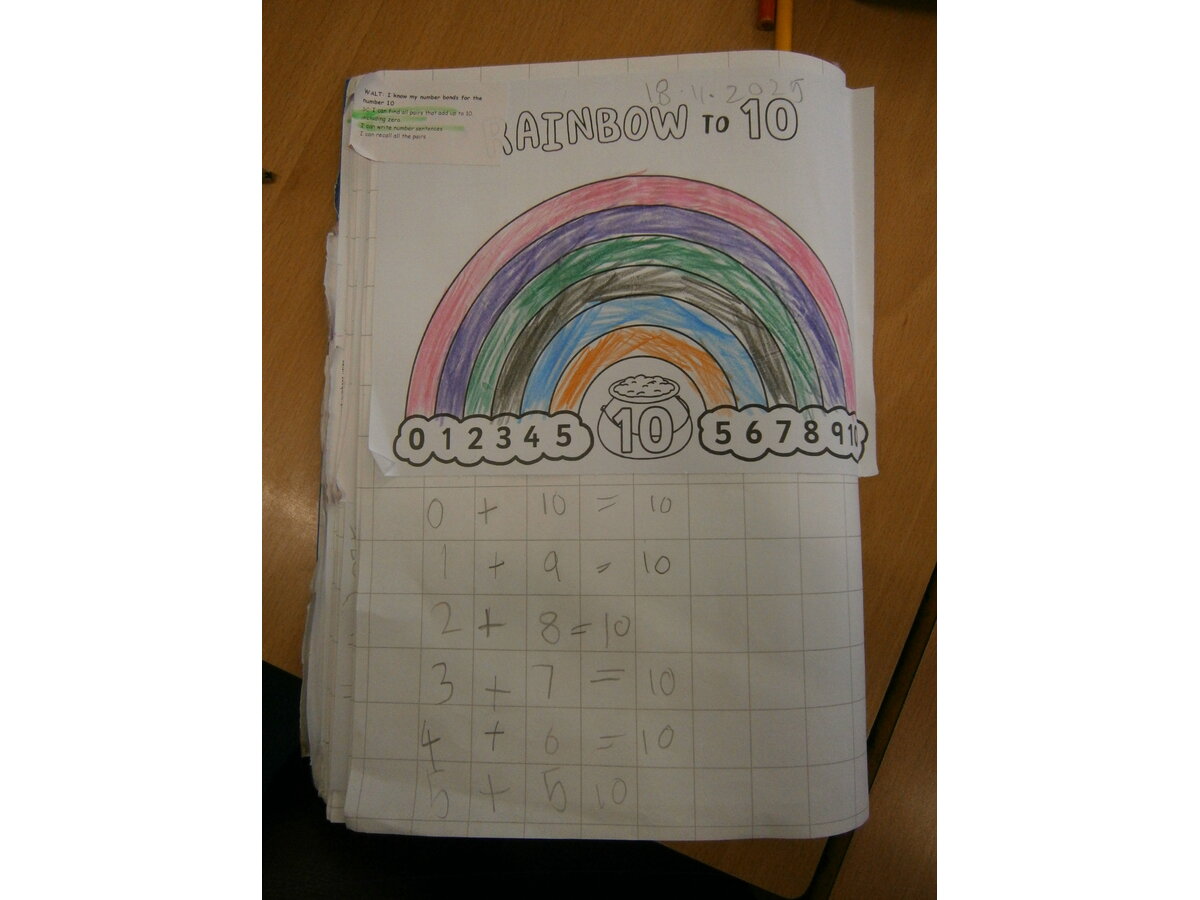 This week in Maths we have been focusing on our number bonds to 10. We used tens frames and counters to make number bonds to 10. We also used a rainbow template to help us remember all of our number bonds to 10.