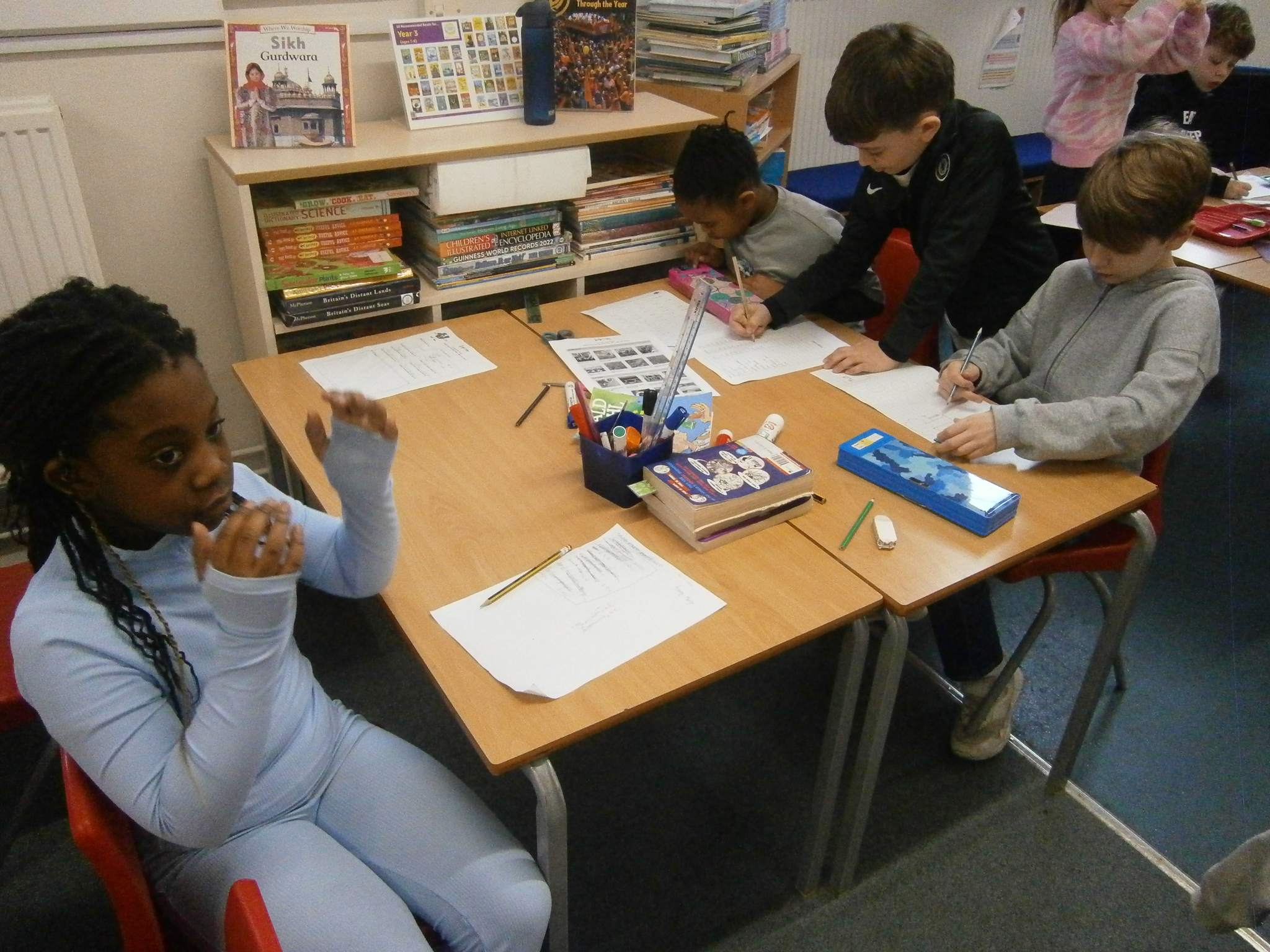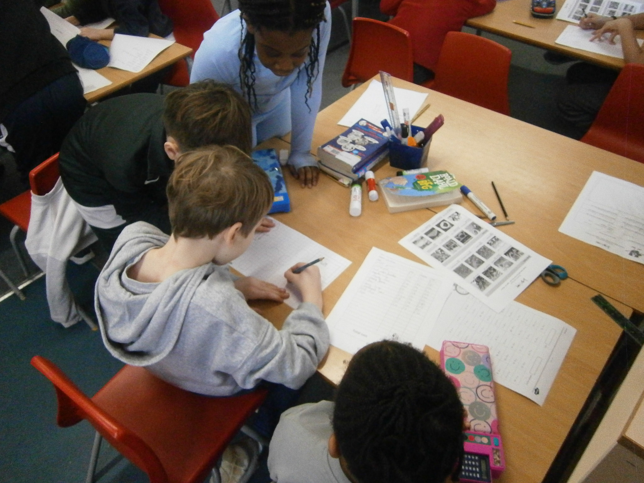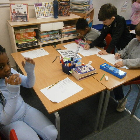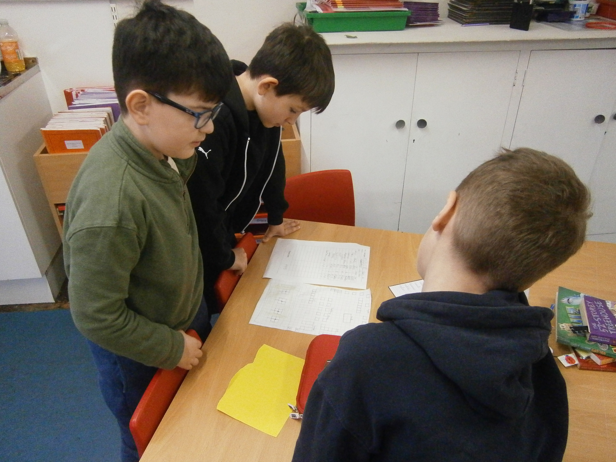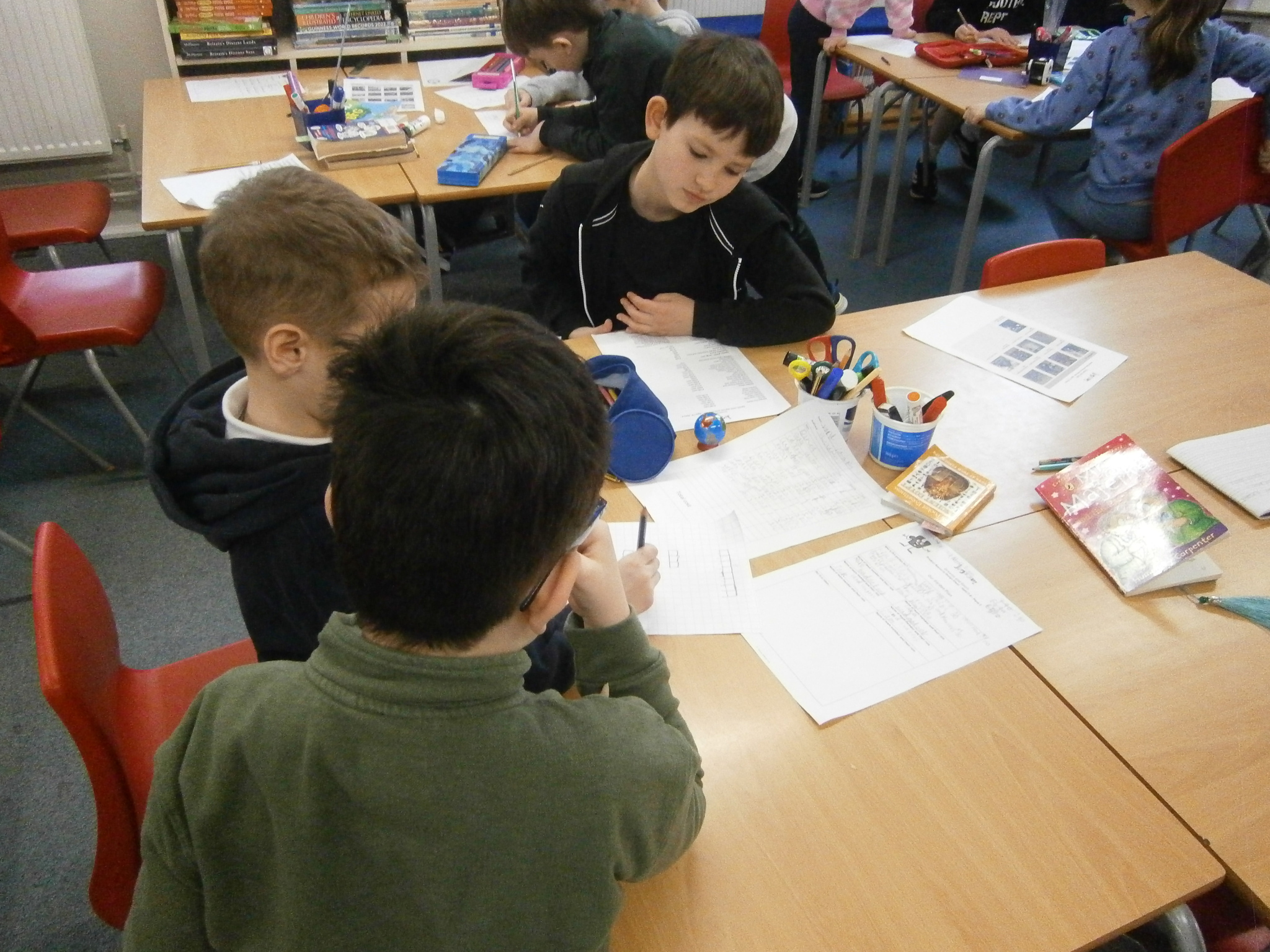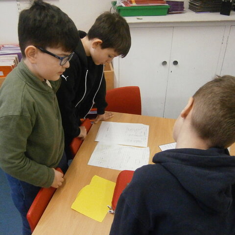 In Maths we were using related calculations to help us work out some 2-digit number x 1-digit number problems.